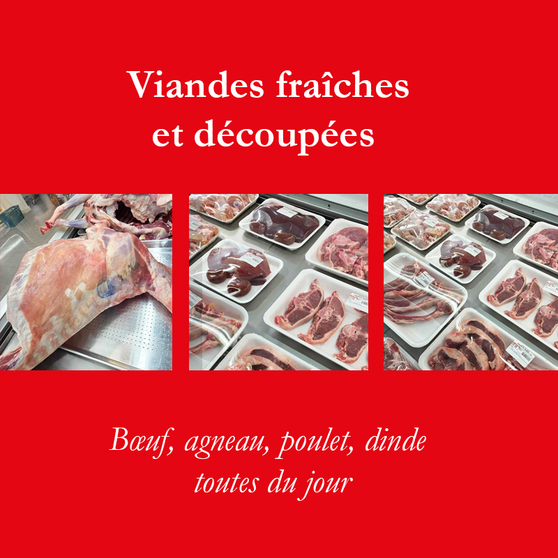 Boucherie et épicerie 100 % halal avec viande fraîche du jour.